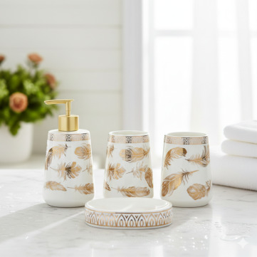 4Pcs Bath Set W-Gold Leaf 12c