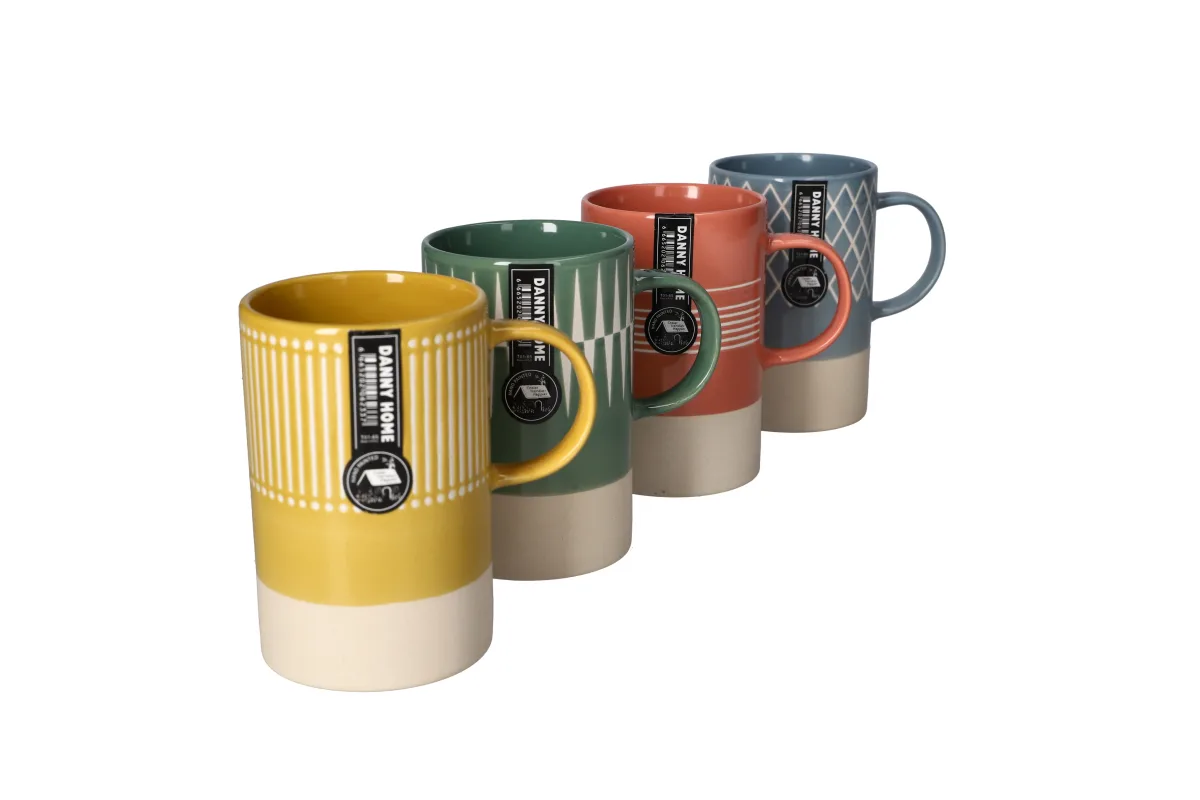 Serve your favourite hot or cold beverages with our stylish and charming geometric coffee mugs set 4pcs. High quality materials. For restaurants, food service, catering, or home use. Stain-resistant, durable, and dishwasher safe. Hand painted.